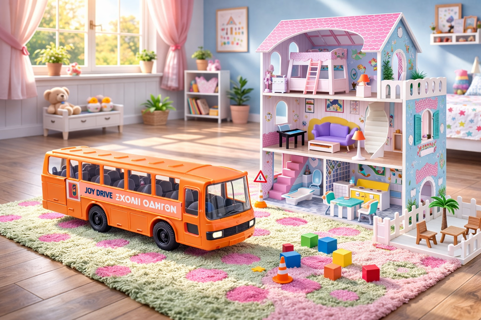 Το παιχνίδι μπορεί να επεκταθεί ακόμη περισσότερο, συνδυάζοντας το κουκλόσπιτο με τον κόσμο των οχημάτων και των σετ πόλης Joytoy, ώστε οι ιστορίες να συνεχίζονται έξω από το σπίτι – από τη βόλτα μέχρι το σχολείο και το ταξίδι.