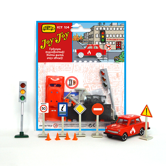 Συναρμολογούμενη καρτέλα με πινακίδες σήμανσης, αυτοκίνητα, σηματοδότες και κώνους για μια ολοκληρωμένη εκπαιδευτική εμπειρία. Συγκεντρώστε την πλήρη συλλογή και μετατρέψτε σε παιχνίδι την κυκλοφοριακή αγωγή!